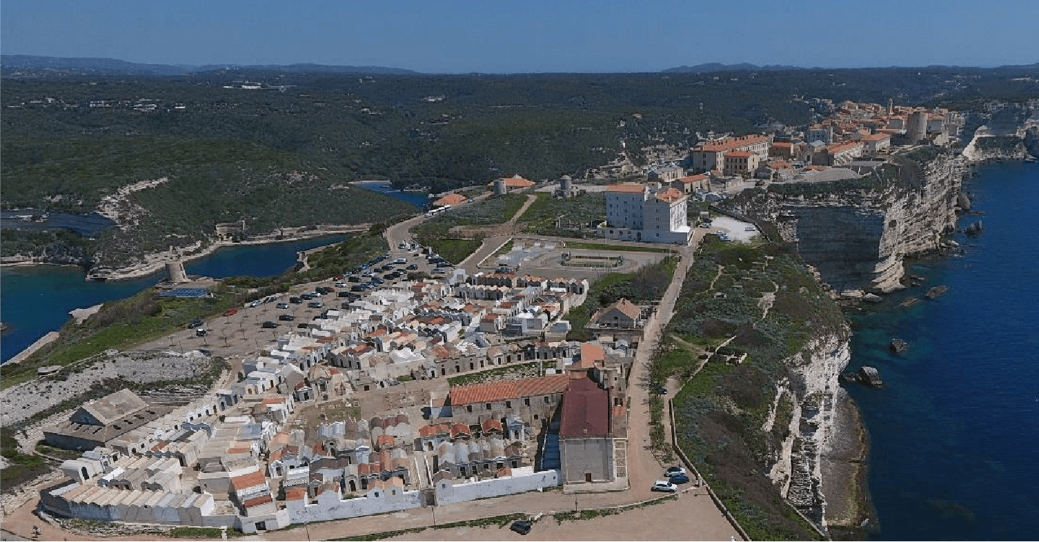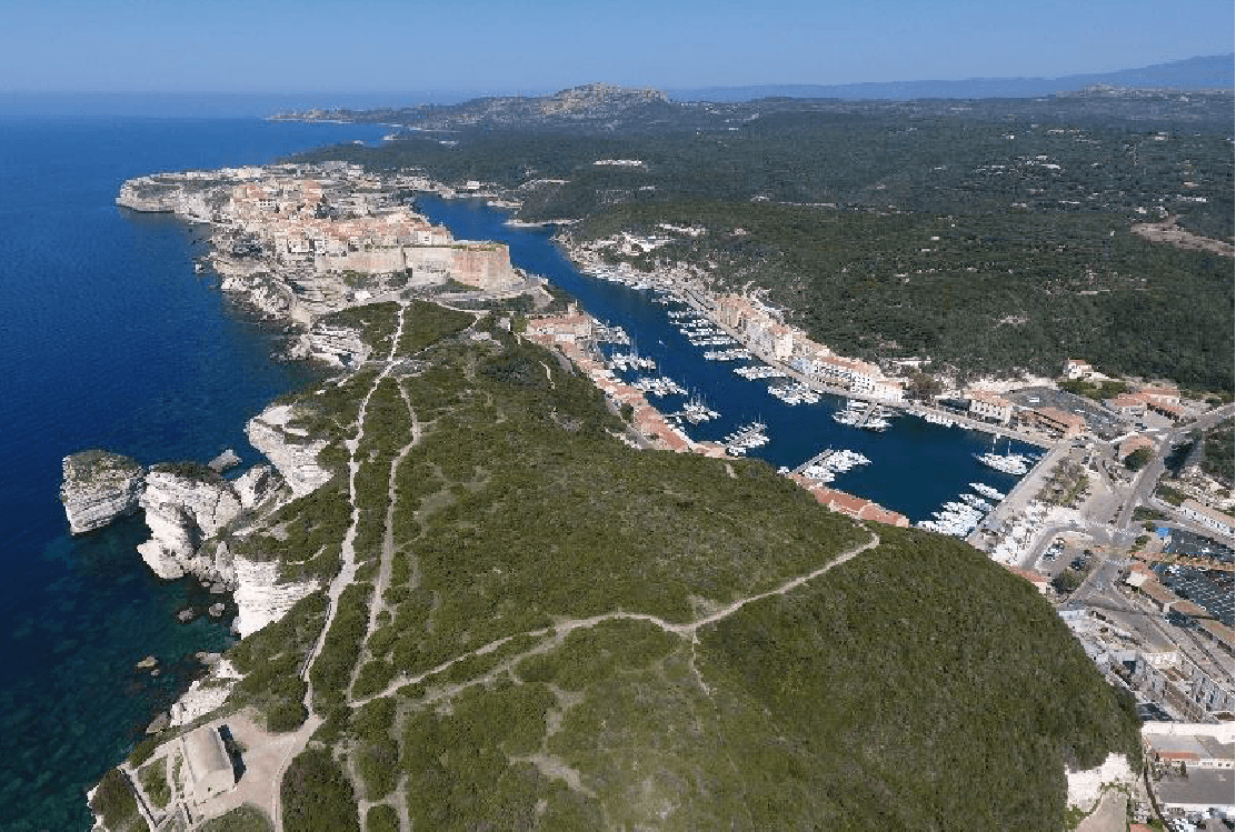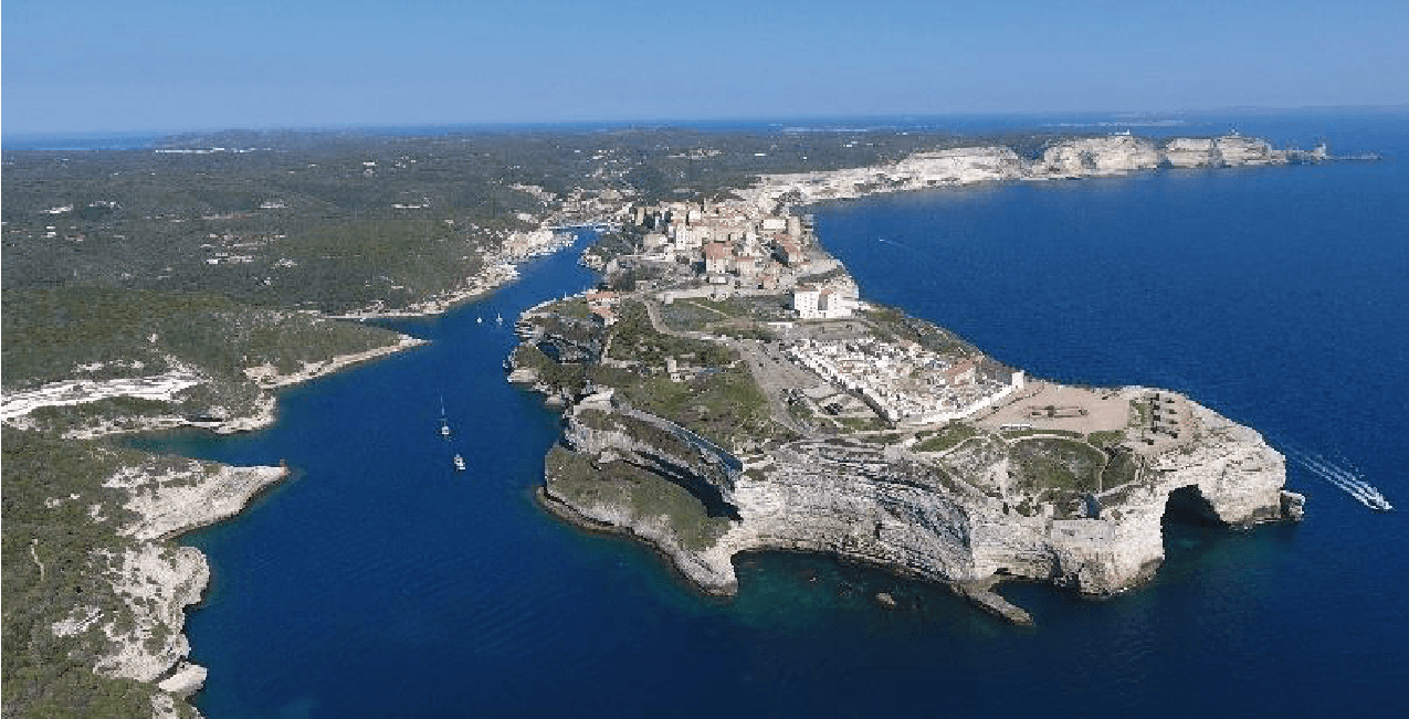 Bonifacio (Bonifaziu en Corse) est la ville la plus au sud de toute la France métropolitaine. La (haute) ville que vous allez visiter est relativement petite, elle est formée par une citadelle s’étendant sur l’entièreté d’une presqu’île d’environ 1500 mètres sur 200. Malgré cela, la commune est gigantesque ! En comptant sa campagne, Bonifacio est plus grand que Paris intra-muros (138 km2 contre 105 pour la capitale).